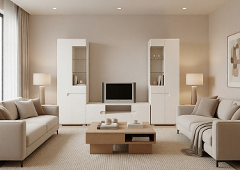 Преимущество модульных систем заключается в том, что вы можете купить мебель для гостиной в едином стиле – классическом либо современном, комплектуя различные элементы набора (шкафы, тумбы, полки, стеллажи и другое) в зависимости от параметров гостиной комнаты и вкусовых предпочтений.