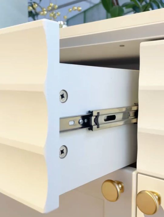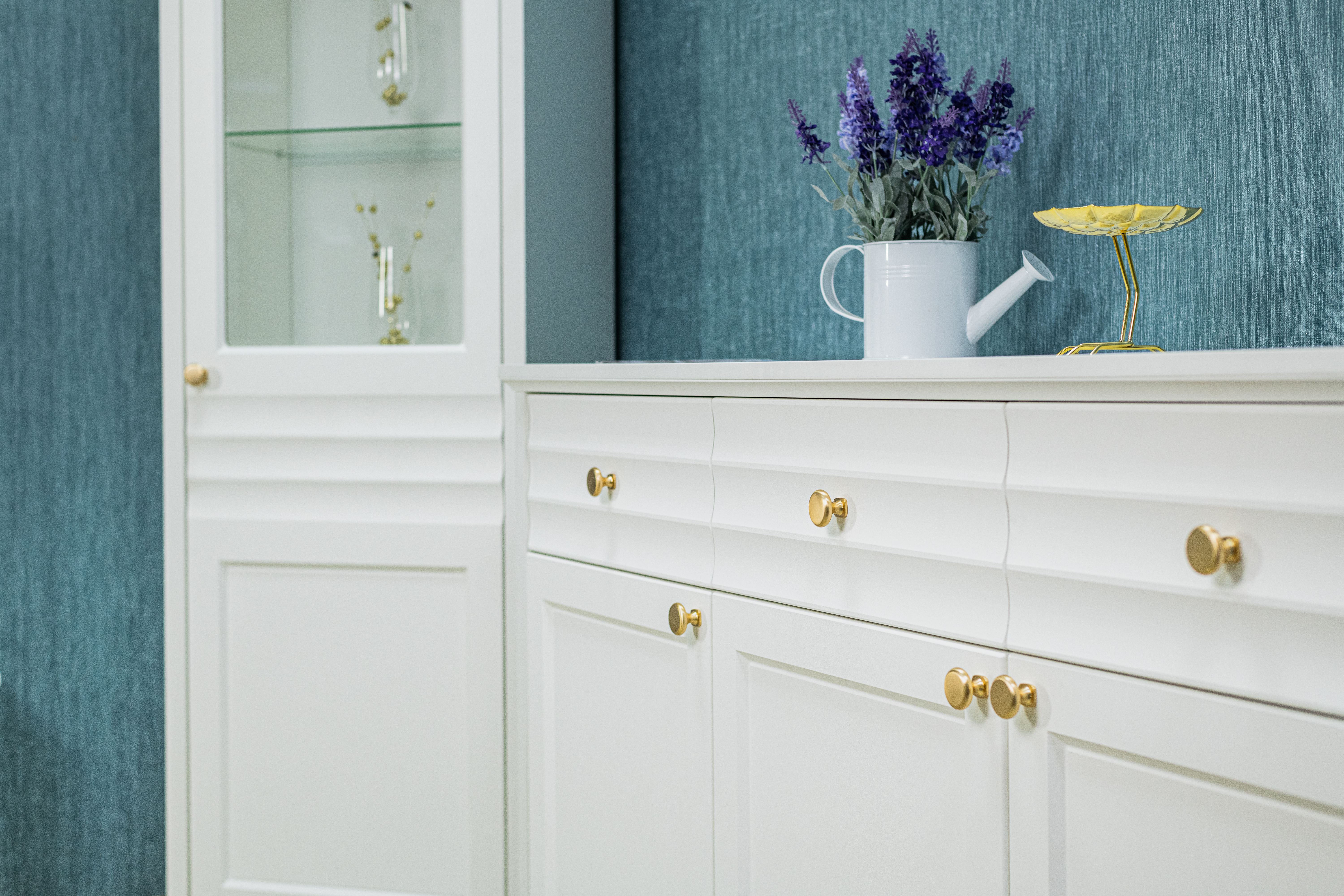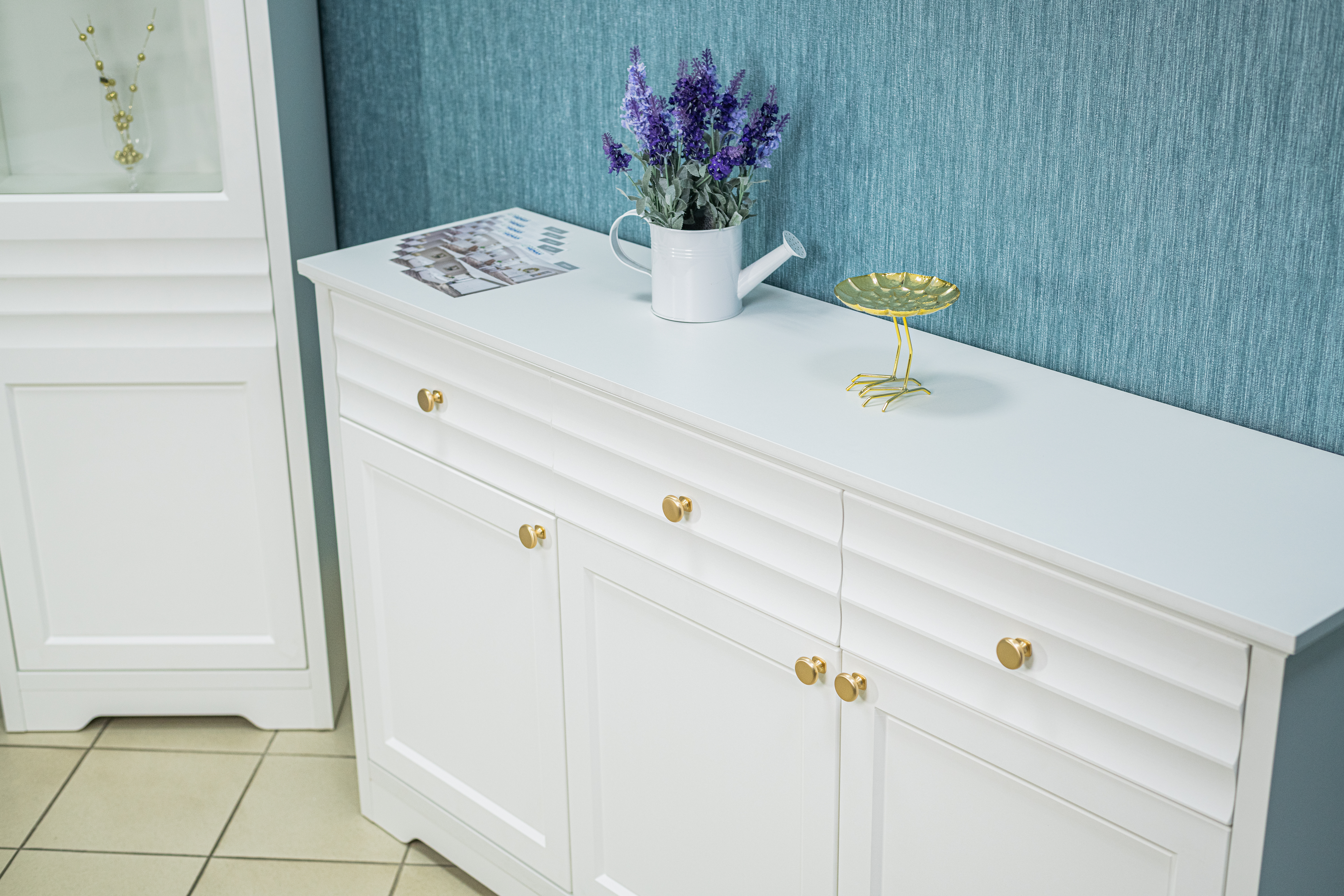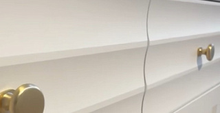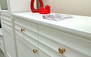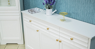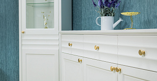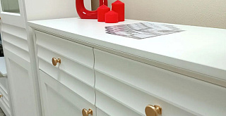 Белый матовый цвет мебели, любимый многими за универсальность, легко сочетается с любыми оттенками стен и пола. Такая палитра позволяет создавать гармоничные интерьеры – от минималистичных до классических. Округлые металлические золотые ручки становятся стильным акцентом, разбавляют строгий и лаконичный вид фасадов и добавляют интерьеру утончённости.