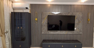 Изысканный стиль подчеркнут золотой металлической линией на изящной столешнице Мрамор Неро Маркина. Дизайнерские резные ножки из дерева придают мебели лёгкость, а инновационное матовое покрытие от итальянских производителей словно приглашает прикоснуться к бархатистой поверхности фасадов.