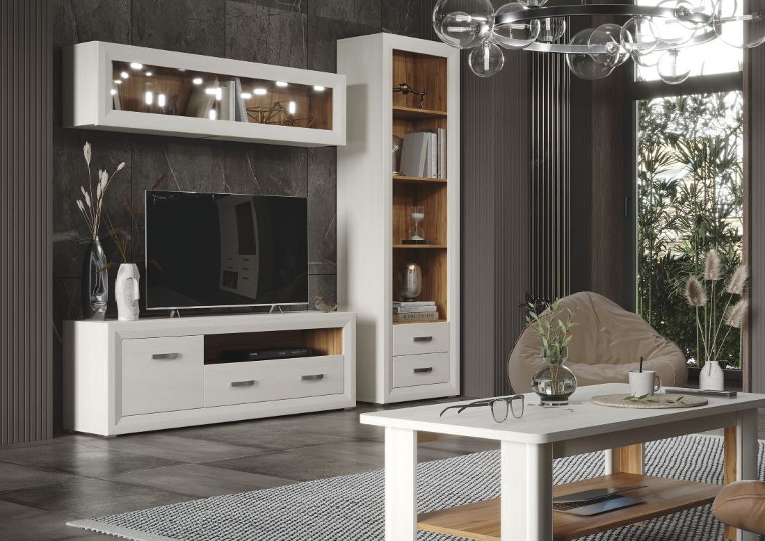 Великолепные фасады коллекции Malta удачно контрастируют со вставками из "ореха лион", продолговатые металлические ручки добавляют изящества, а подсветка стеклянных полок выгодно подчеркивает древесную структуру.