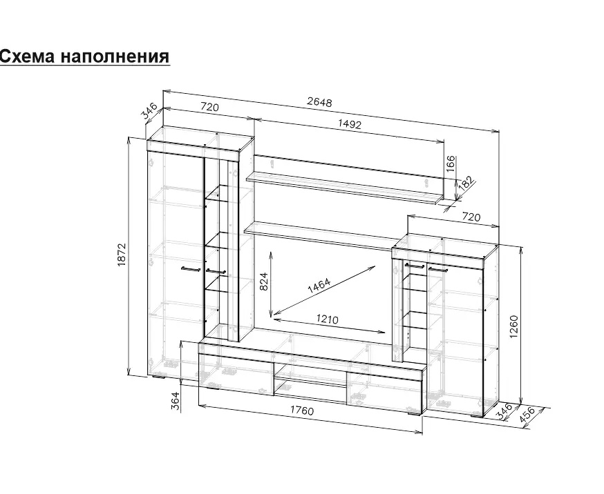 | Размер ниши под ТВ, мм | 1210х824 мм |