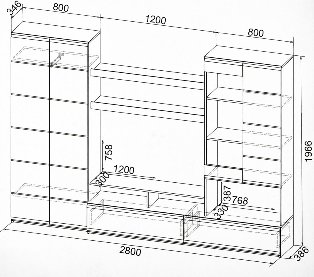 | Размер ниши под ТВ, мм | 1200х758 мм |