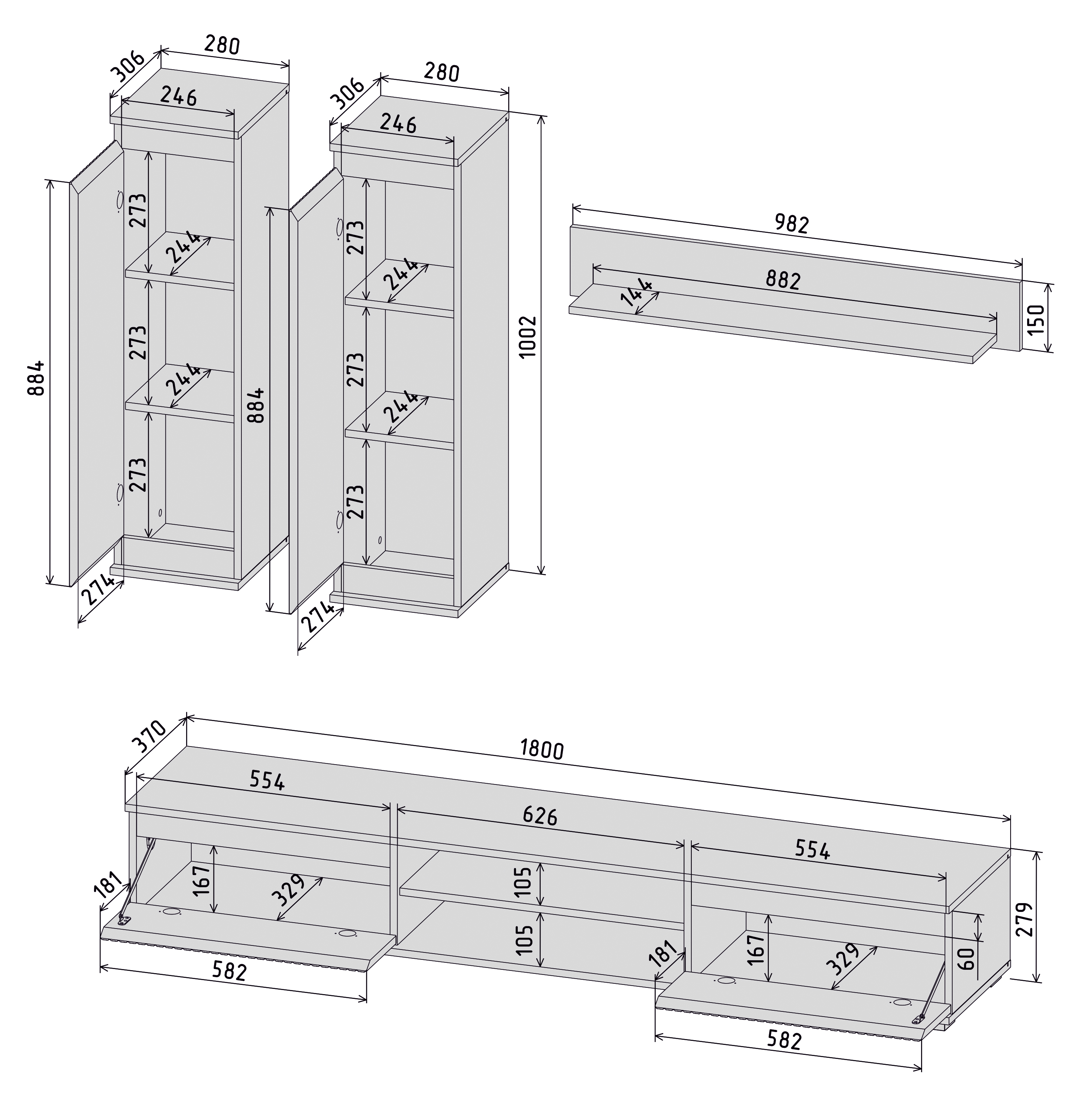 | Высота, мм | от 1281 |