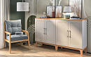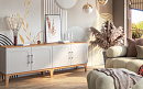 Изящные ножки из массива дерева придают композиции воздушность и визуально расширяют пространство, наполняя его светом. Инновационное матовое покрытие фасадов – это тактильное наслаждение, мягкая бархатистая поверхность, которая словно приглашает прикоснуться. Стеклянные витрины добавляют лёгкость и глубину, создавая эффект простора и ощущение порядка.