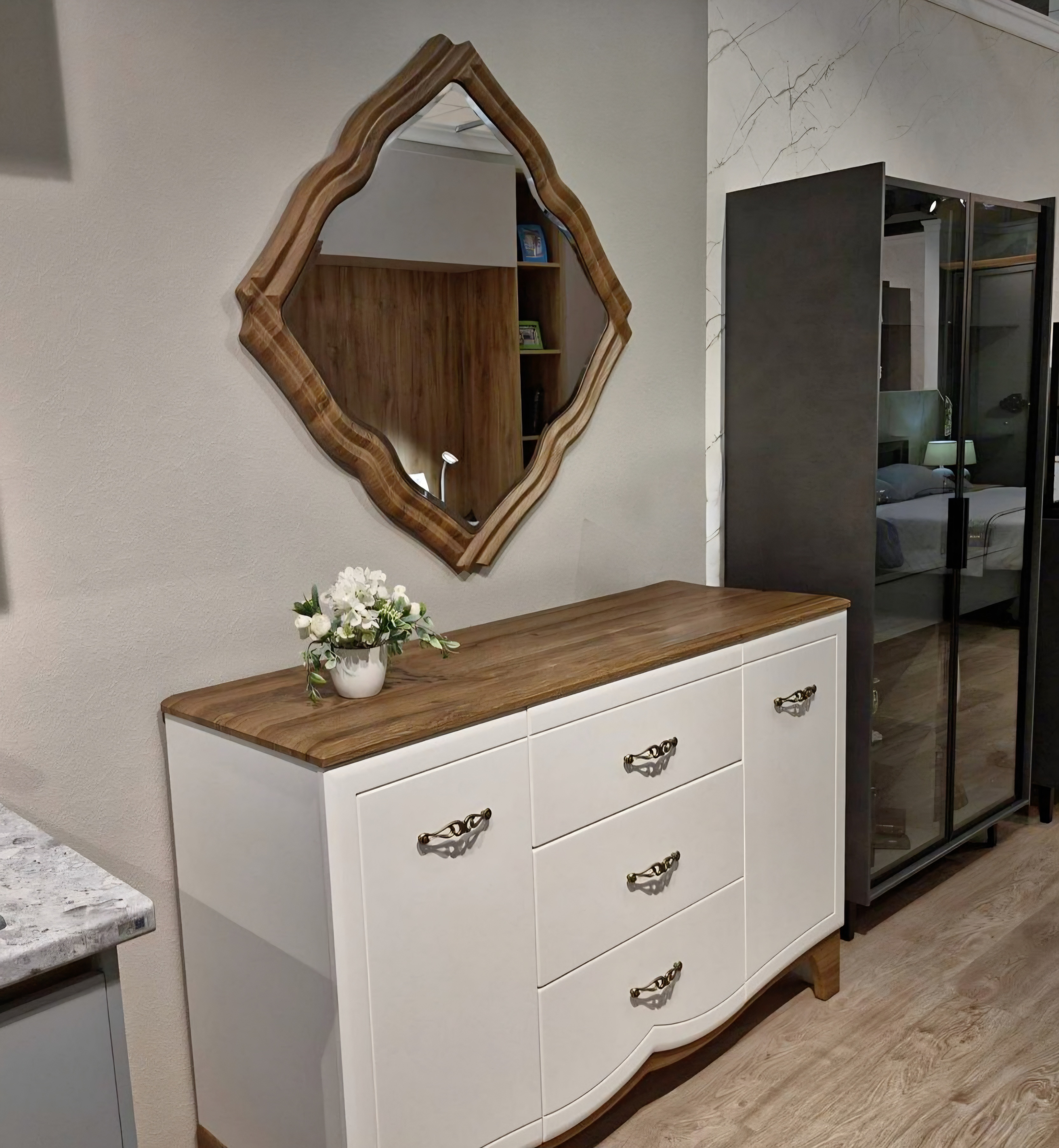 Коллекция Тиффани создаёт атмосферу элегантности и комфорта. Контраст светлых и тёмных оттенков придаёт интерьеру глубину и выразительность, а строгая геометрия форм делает композицию лаконичной и современной.