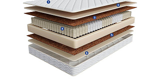 | Материал | Кокосовая койра, Пенополиуретан, Блок независимых пружин, Чехол, Войлок, Трикотаж |