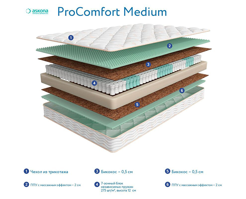 Интернет магазин OCO.BY представляет Вашему вниманию матрас Аскона 3.0 ProComfort Medium. Заказать и купить матрас Аскона3.0 ProComfort Medium очень просто - вам достаточно оформить заказ онлайн либо по телефону. Мы доставим вашу покупку в любую точку Минска и области.