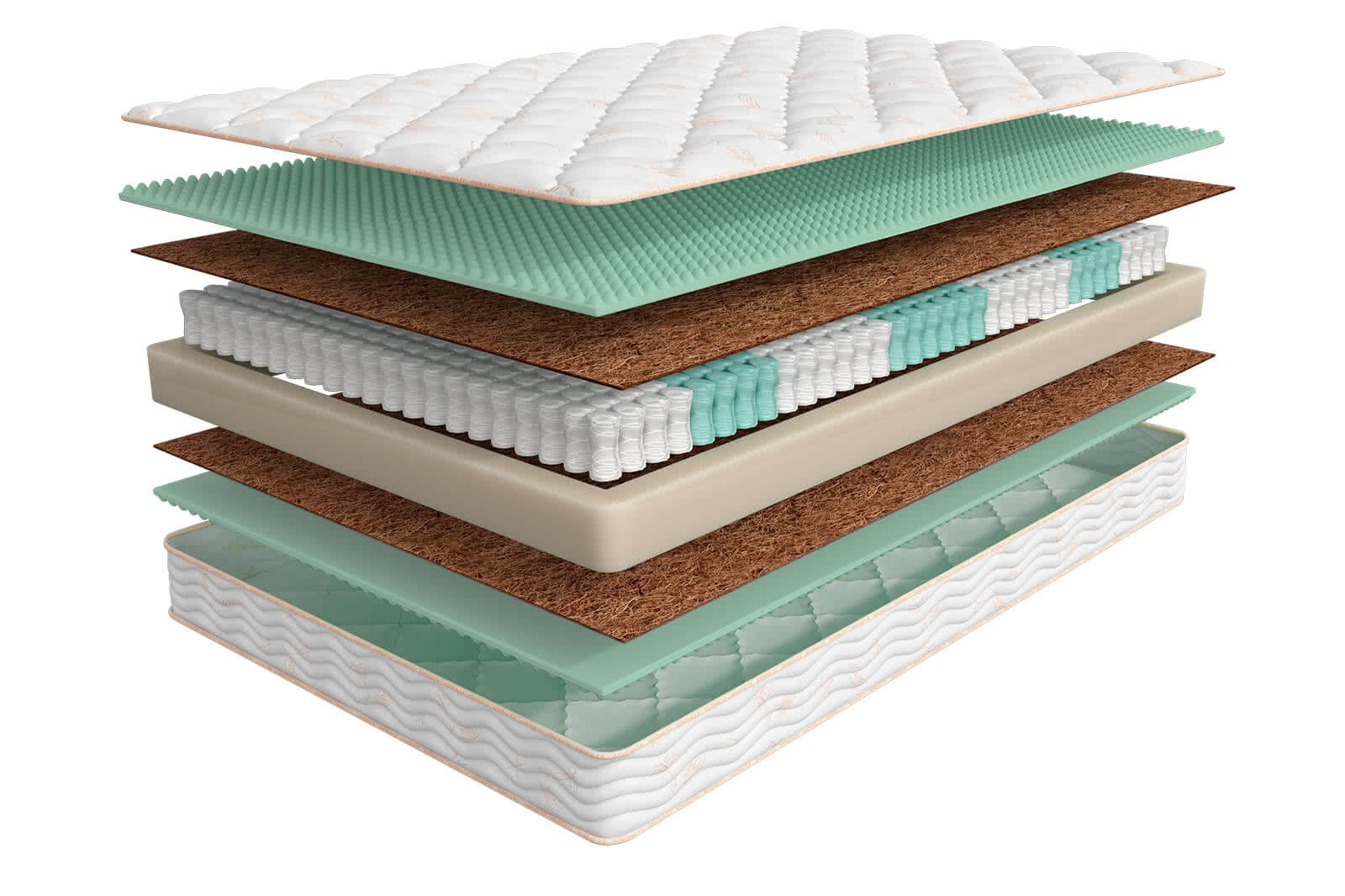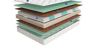 | Материал | Кокосовая койра, Пенополиуретан, Блок независимых пружин, Чехол, Войлок, Трикотаж |