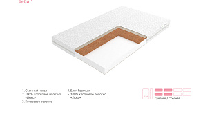 | Материал | Кокосовая койра, Хлопковое полотно, Чехол, FoamLux |