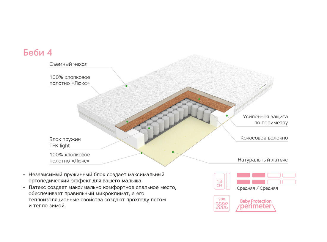 | Материал | Кокосовая койра, Латекс, Блок независимых пружин, Хлопковое полотно, Чехол |