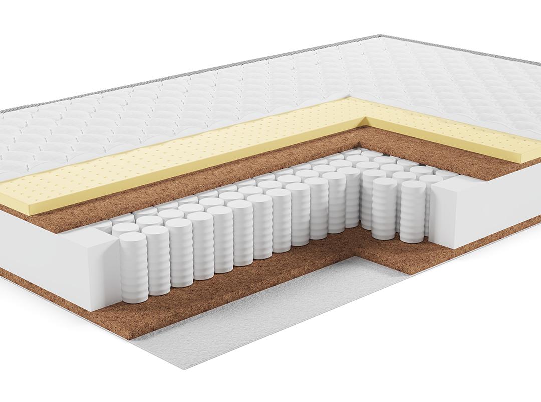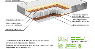 | Материал | Латекс, Блок независимых пружин, Хлопковое полотно, Латексированная кокосовая плита, Усиление по периметру матраса |