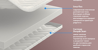 Невысокая беспружинная модель на основе эластичного пенного материала Smartflex, придающего матрасу вентилируемость и комфортную упругость.