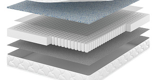 Односторонний матрас средней жесткости с блоком независимых пружин,расположенных рядами, плотностью 256 шт/м2 и слоем эластичного материала AirFoam. Практичное недорогое решение.
