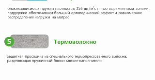 Защитная прослойка из термопресованного волокна, разделяет пружинный блок и мягкие наполнители, придавая дополнительную жесткость. |