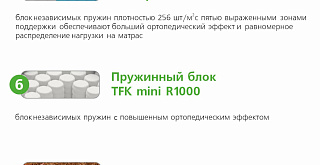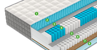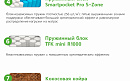 | Smartpocket PRO 5-Zone | Усовершенствованный блок независимых пружин Smartpocket плотностью размещения 256 пружин на м2. Каждая пружинка упакована в отдельный чехол и работает самостоятельно, отдельно, независимо от других пружин в блоке. Такой блок принимает форму тела спящего на матрасе - в этом и заключается ортопедический эффект. Усиление ортопедического эффекта происходит благодаря пяти выраженным зонам поддержки, которые равномерно распределяют нагрузку на матрас для более комфортного и здорового сна. |