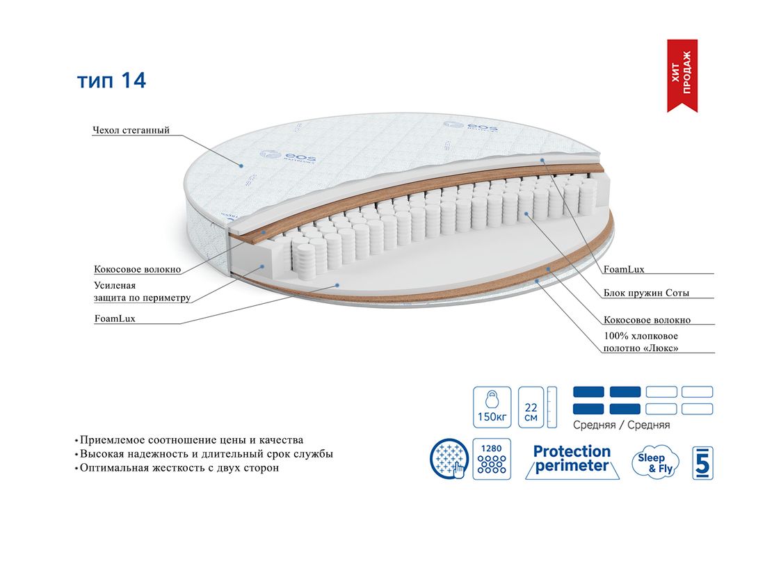 Интернет магазин OCO.BY представляет Вашему вниманию матрас ЭОС (EOS) Тип 14. Заказать и купить матрас ЭОС (EOS)Тип 14 очень просто - вам достаточно оформить заказ онлайн либо по телефону. Мы доставим вашу покупку в любую точку Минска и области.
