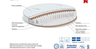 | Материал | Блок независимых пружин, Хлопковое полотно, Чехол, FoamLux, Кокосовое волокно, Усиление по периметру матраса |