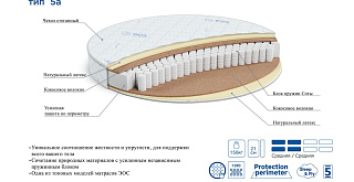 | Материал | Латекс, Блок независимых пружин, Чехол, Кокосовое волокно, Усиление по периметру матраса |