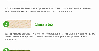 | Bambootex | Съемный чехол из экологичной трикотажной ткани Bambootex одновременно обладает мягкостью и исключительной прочностью. Благотворно воздействует на кожу и создает оптимальный микроклимат спального места. Сохраняет свойства после многочисленных стирок. |