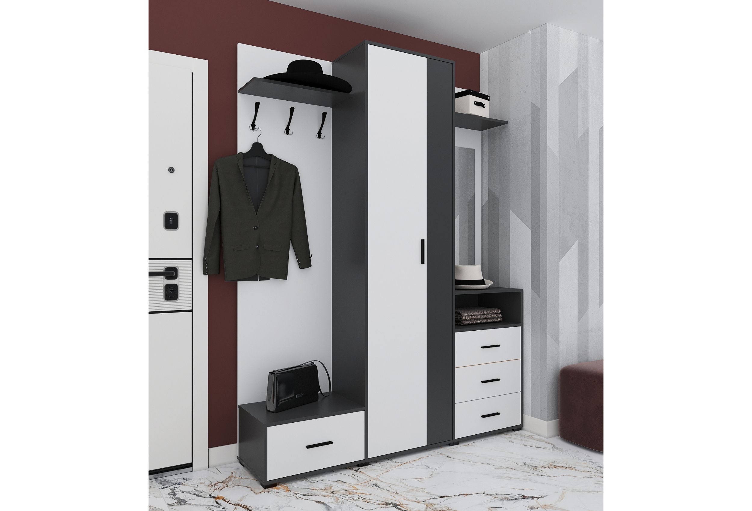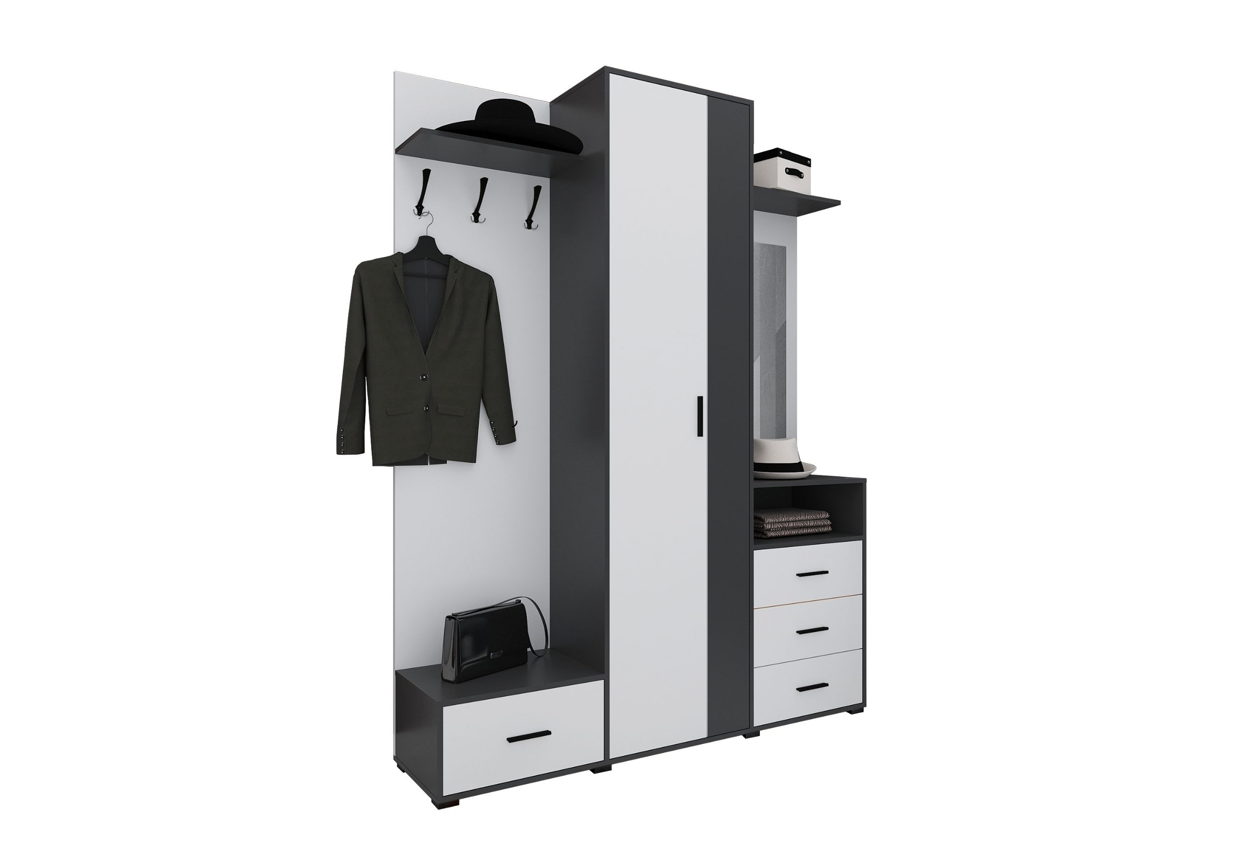 Интернет магазин OCO.BY представляет Вашему вниманию мебель для прихожей Вита-4 Белый/Антрацит фабрики Интерлиния. Купить прихожую Вита-4 Белый/Антрацит очень просто - вам достаточно оформить заказ онлайн либо по телефону. Мы доставим вашу покупку в любую точку Минска и области.