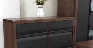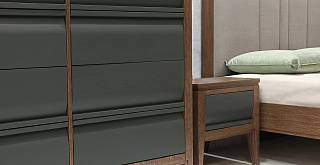 Коллекция Аспен Антрацит для спальни — это строгий дизайн с акцентом на графитовые фасады и натуральную текстуру. Контраст тёмных оттенков и стеклянных элементов подчёркивает современный стиль и визуальную глубину.