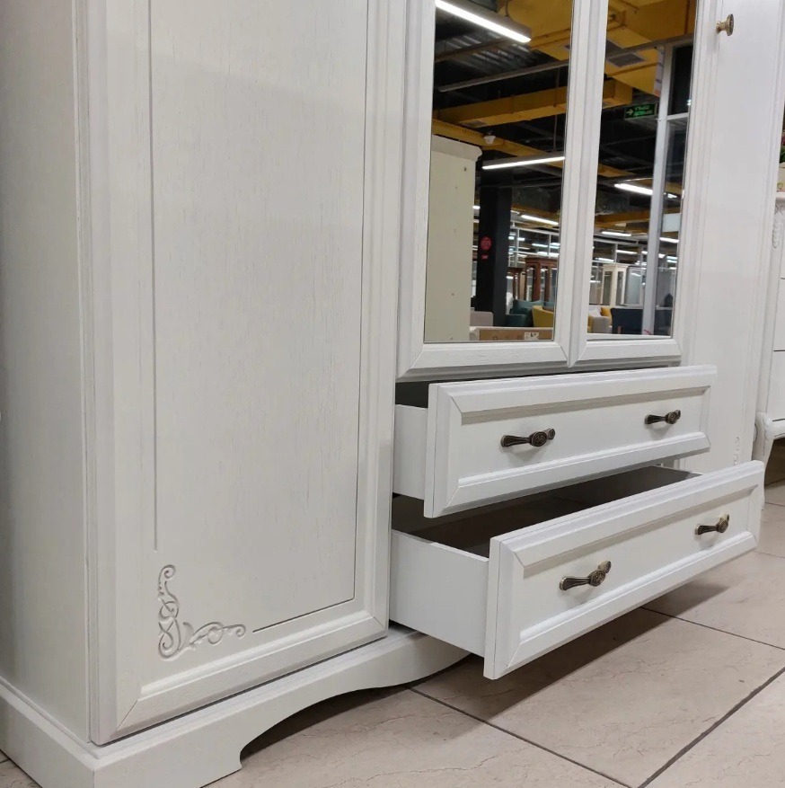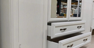 - дверцы и выдвижные ящики оснащены фигурными волнистыми ручками, удобными и стильными;