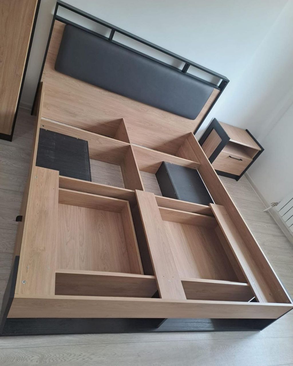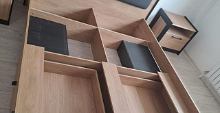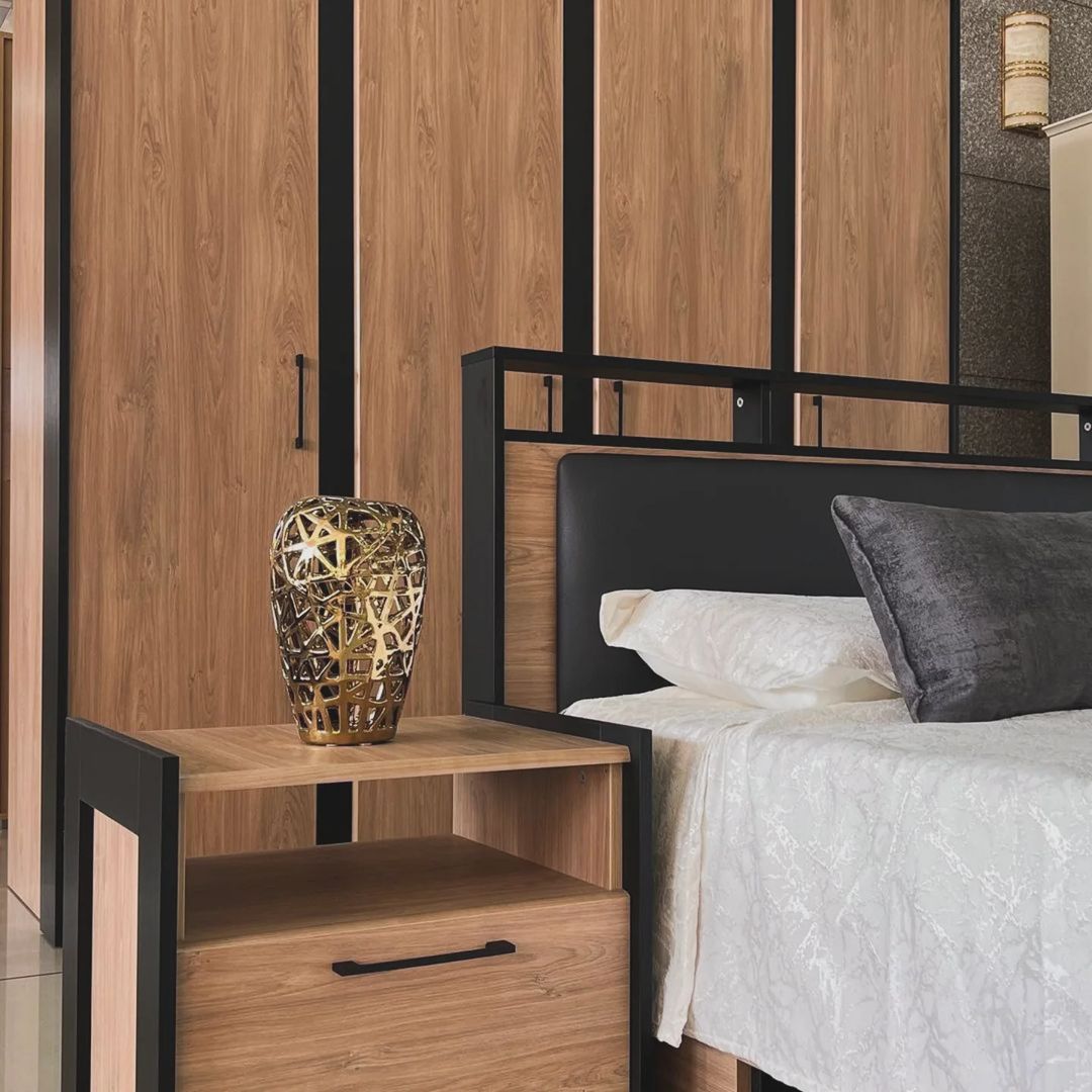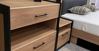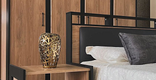 Коллекция Стенли для спальни — стильное сочетание матового чёрного и тёплого Дуба Прованс, которое идеально подходит для современного интерьера. Тёмное обрамление боковин модулей и контрастные линии фасадов подчёркивают глубину и элегантность дизайна.